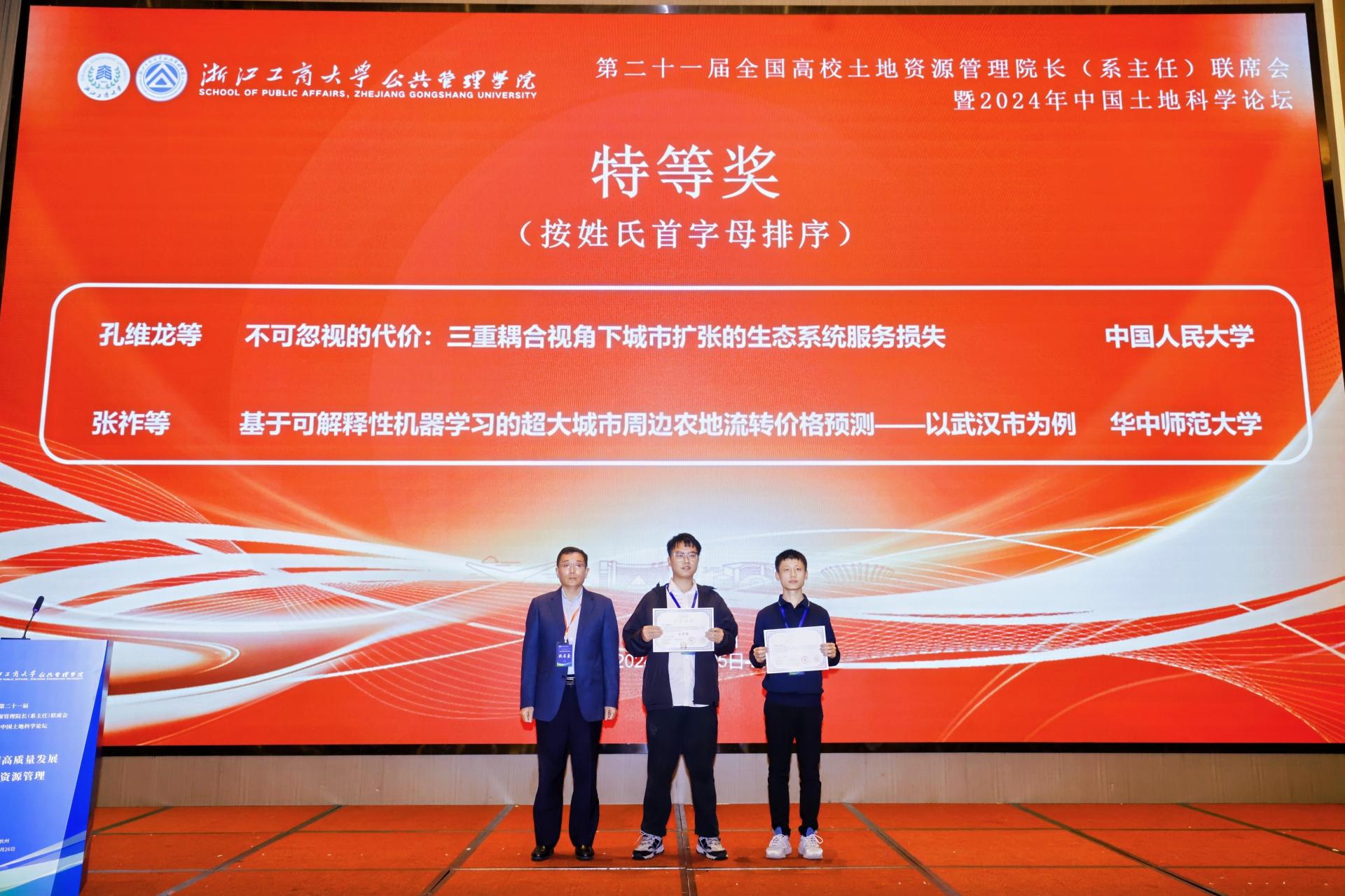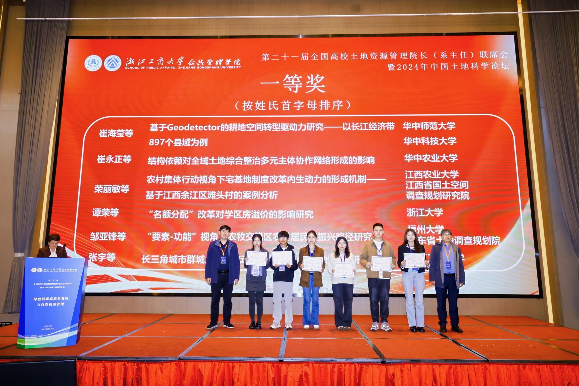 参与此次第二十一届全国高校土地资源管理院长(系主任)联席会暨2024年中国土地科学论坛,与同行学者深入交流,充分展现了我院土地资源管理专业的最新科研成果,也拓展了我院学子的学术视野,共同推动学科的前沿进展。此次获奖是我院聚力培养高质量研究生、助推高水平学科建设的有力证明,更是服务国土事业发展等国家战略需求的充分体现。